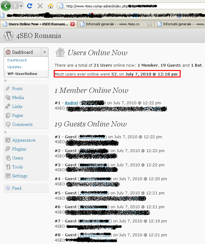 In data de 07.07.2010 la ora 12.18 pm am avut cei mai multi useri online in acelasi moment ce navigau pe blog-ul nostru au fost 52 Guests Online asta nea facut sa prindem mai multa incredere in noi si sa muncim mai mult pentru el !!
